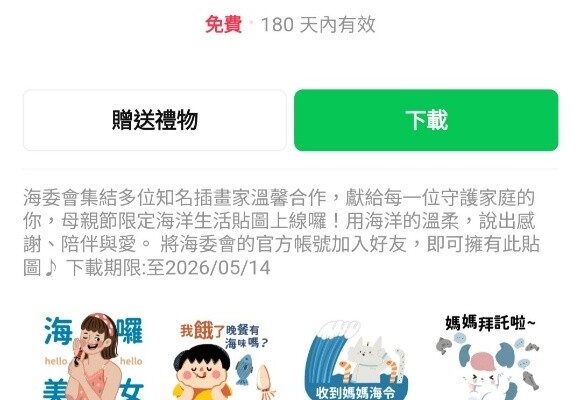 國內新聞 海委會配合母親節主題,推出第二波限時免費「海洋母親節」LINE貼圖 Hsieh, Chung-pin5 小時 以前5 小時 以前01 mins 海洋委員會3月「海洋兒童節」LINE貼圖大受好評,下載量迅速突破67萬次,掀起收藏熱潮… 閱讀更多