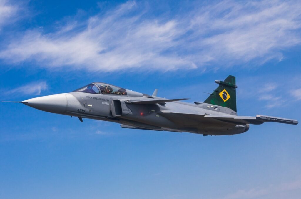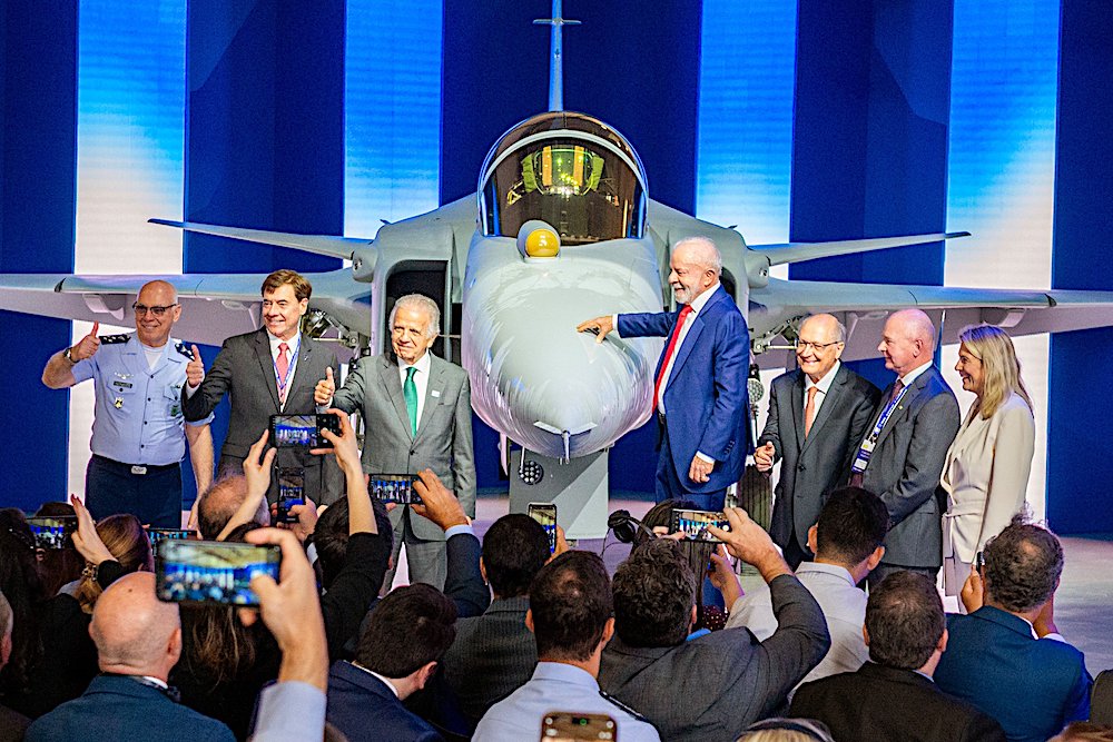 SAAB、巴西航空工業公司(EMBAREAR)和巴西空軍(Força Aérea Brasileira)於3月25日在聖保羅州加維昂佩索託的巴西航空工業公司工業園區,舉行巴西自行生產的首架獅鷲E型戰機推出典禮。