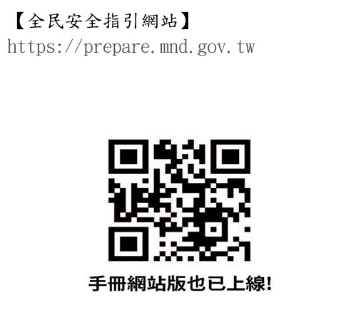新版「全民國防手冊」主題為「當危機來臨時:臺灣全民安全指引」,內容區分平時的準備、當危機來臨時、守護家園等3個章節、18個標題等。手冊的編纂強調(一)實體設計,貼心耐用;(二)章節分明,一目了然;(三)掃QR Code,延伸學習;(四)雙版本,聰明運用等四大特點。